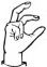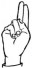 На ћирилици написано БОГДАН БИЗУМИЋ састоји се из 13 слова [?]. Исписано ћириличном једноручном азбуком за глувонеме: